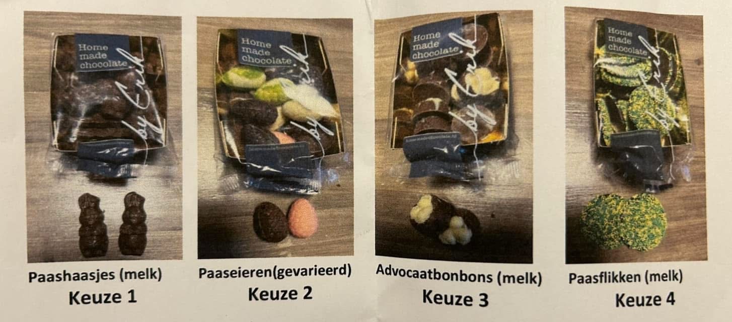 Ook dit jaar hebben wij weer de chocolade paasactie! Heerlijke chocolade van Home Made Chocolate
